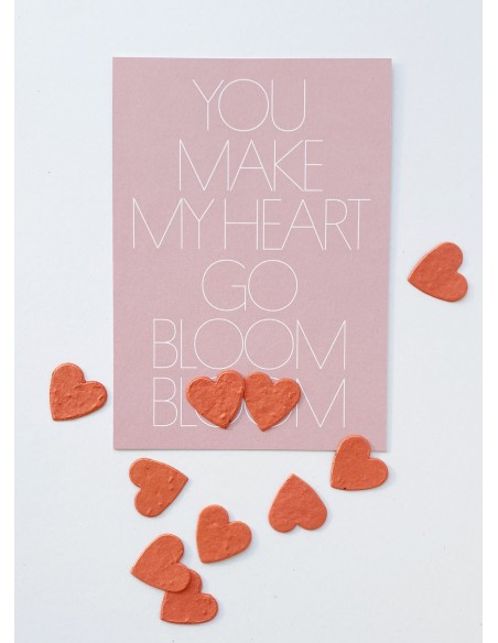- roze kaart met opschrift You make my heart go Bloom Bloom